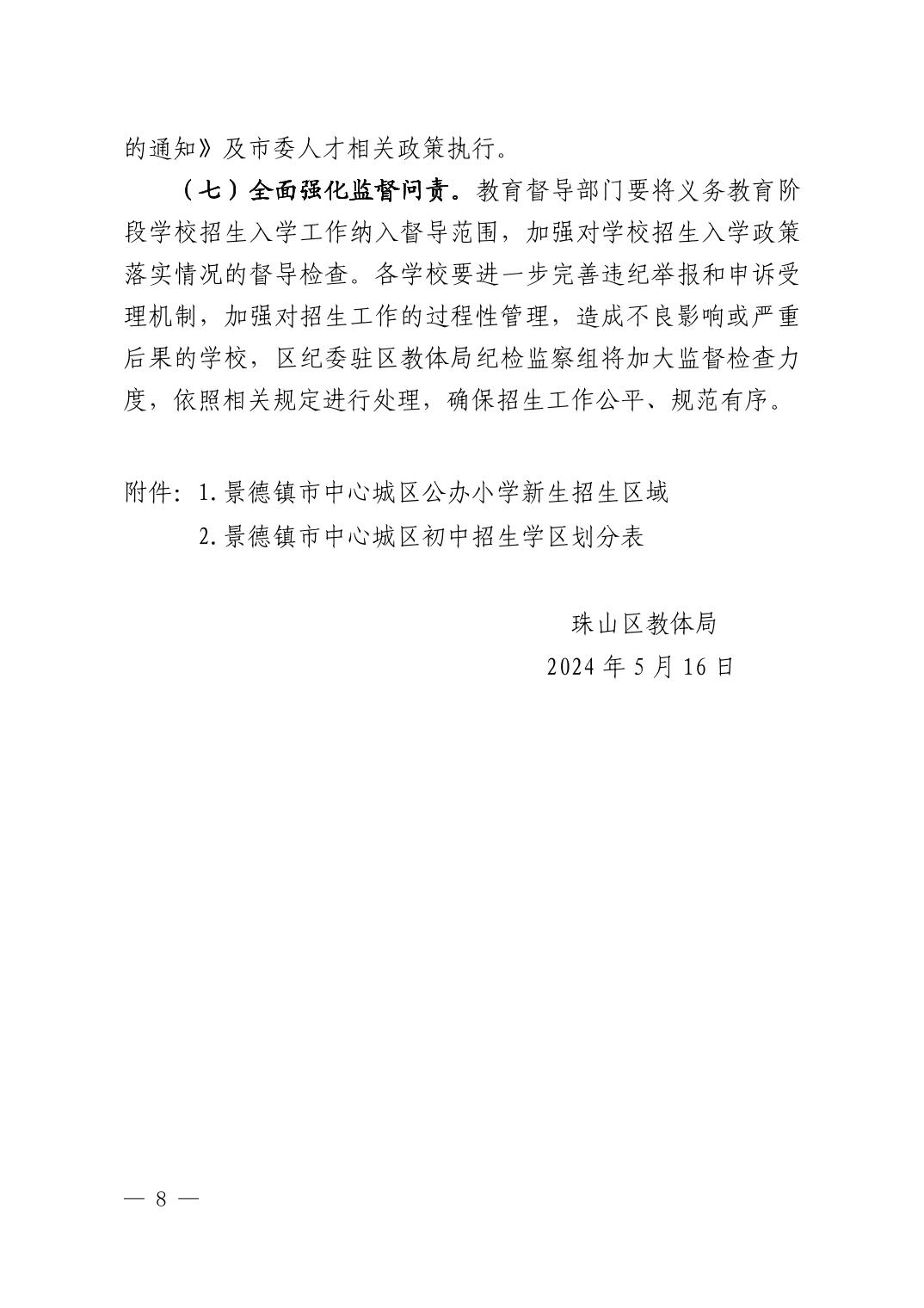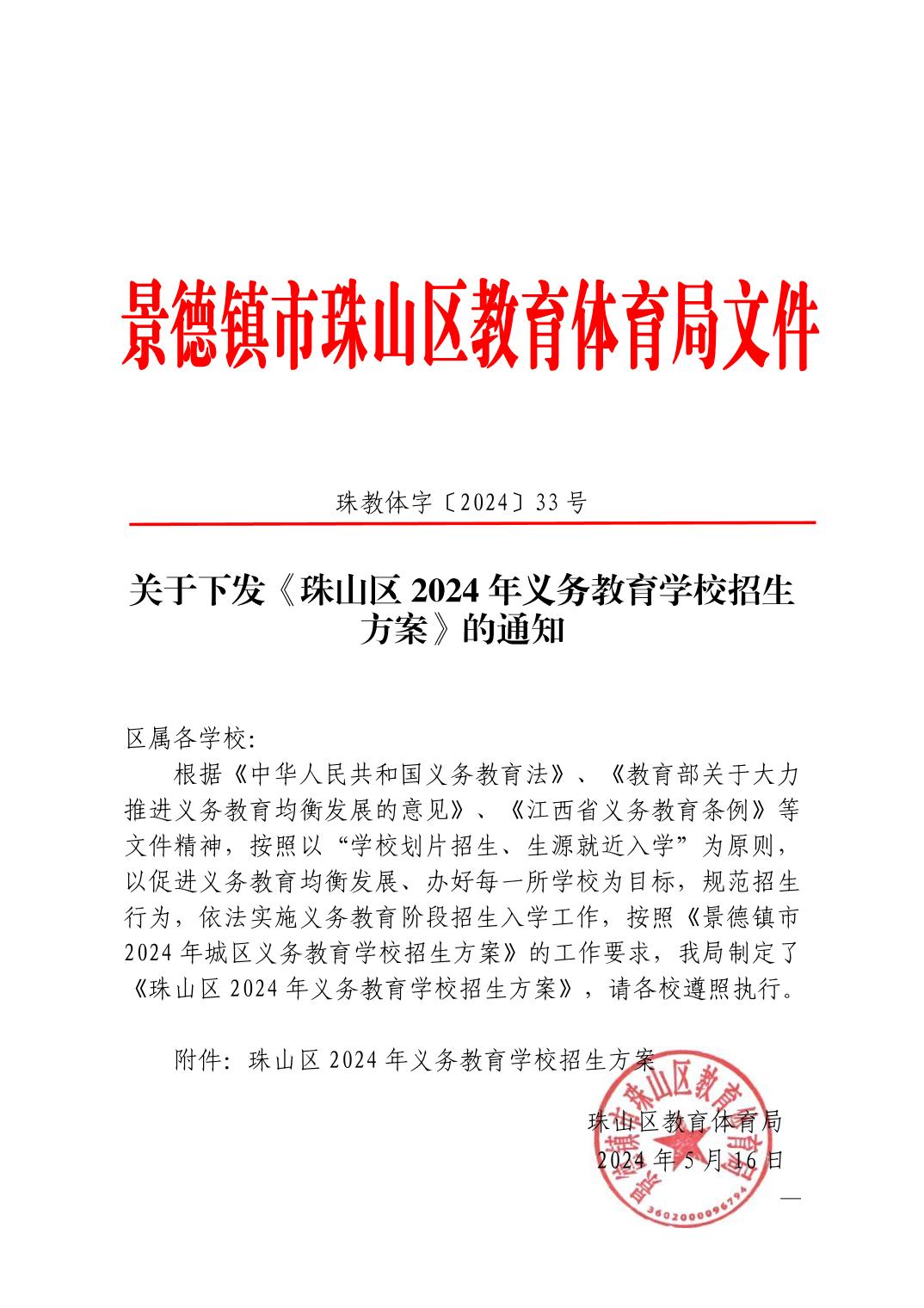 珠山区2024年义务教育学校招生方案
