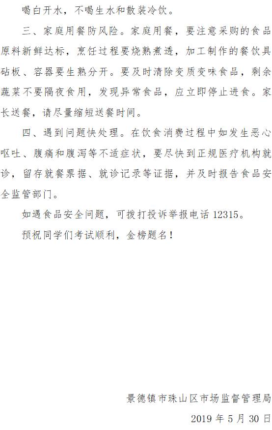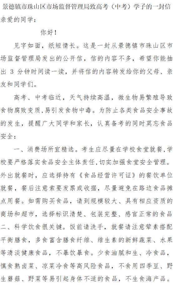 景德镇市珠山区市场监督管理局致高考(中考)学子的一封信