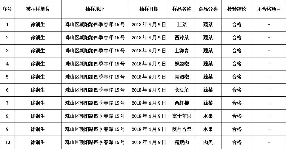 本次对江西省景德镇市珠山区珠山区朝阳路四季春晖15号抽检的食用农产品包括蔬菜、水果、肉类产品共10批次,合格样品10批次,具体信息详见附件。