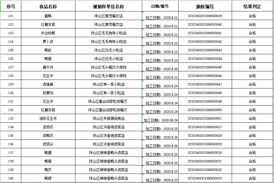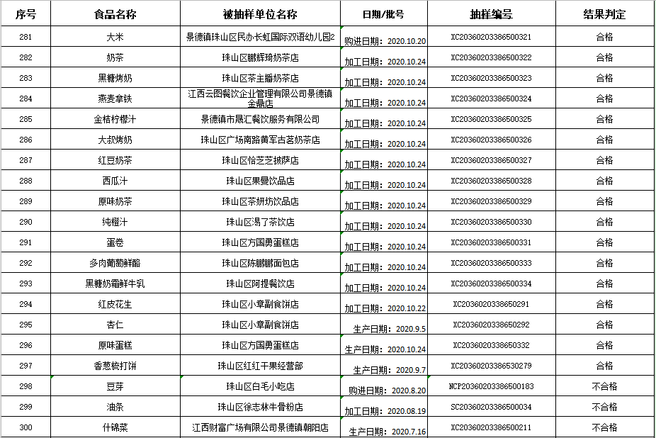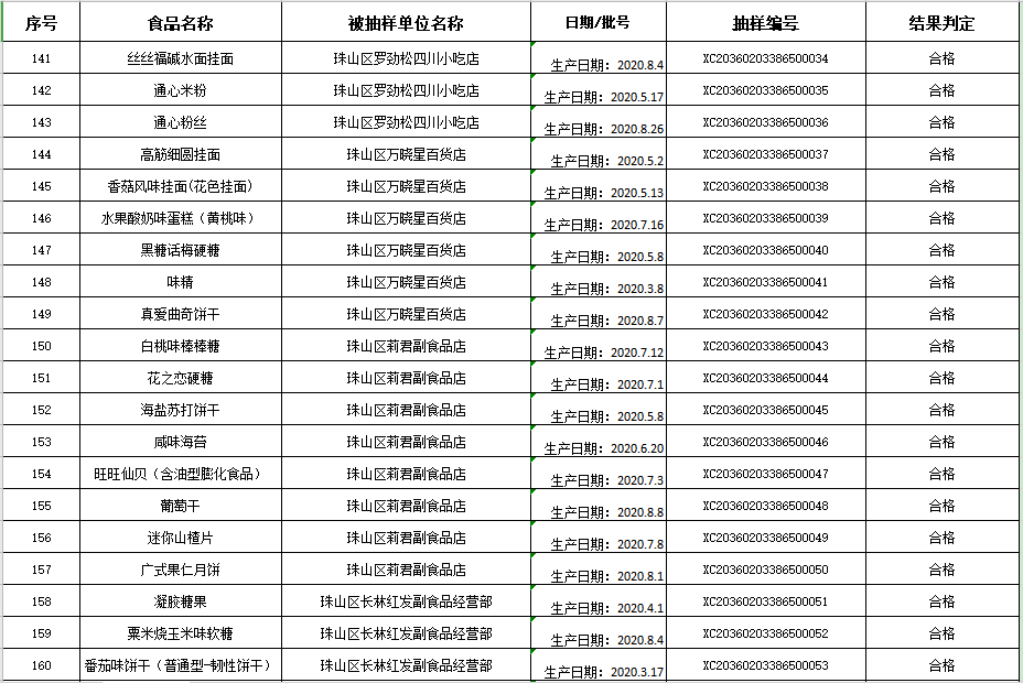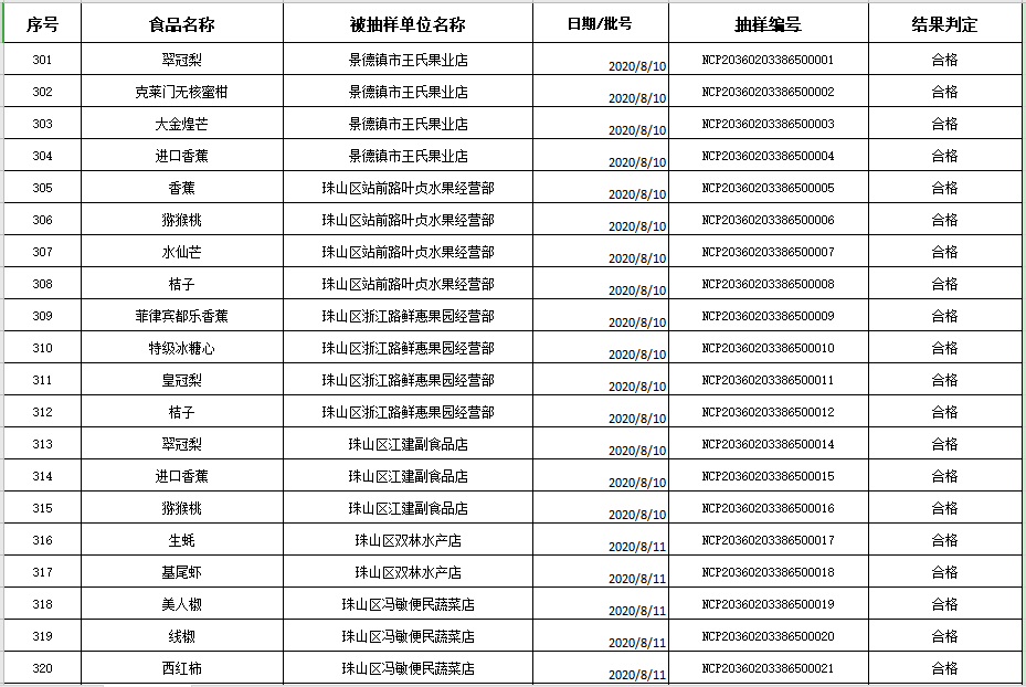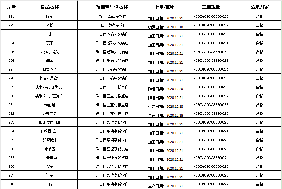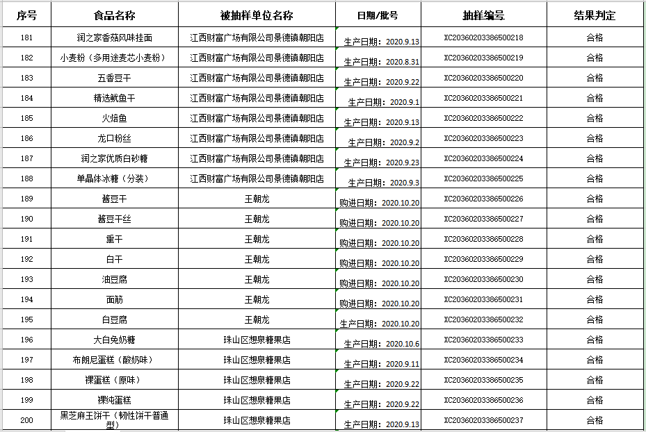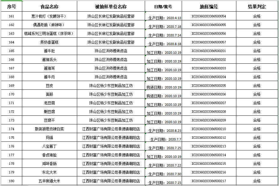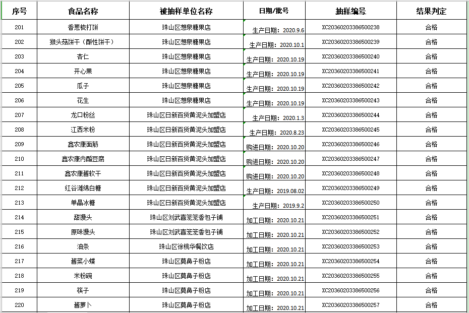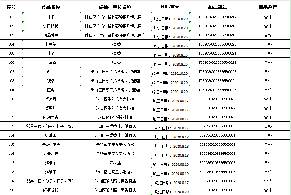 依据《中华人民共和国食品安全法》及其实施条例等有关规定,珠山区市场监督管理局本期公布2020年珠山区食品抽检信息共600批次样品,现将抽检信息公布如下: