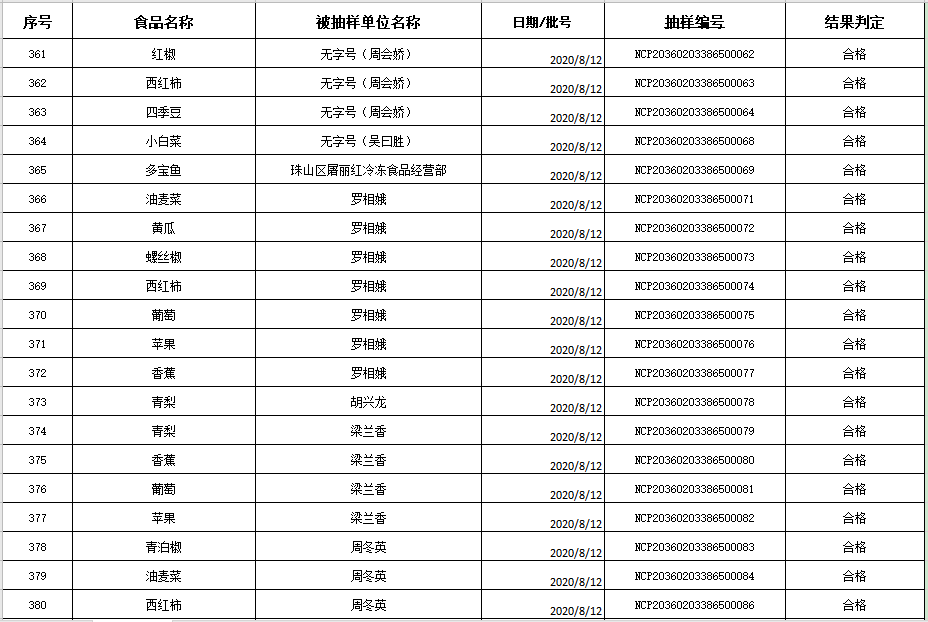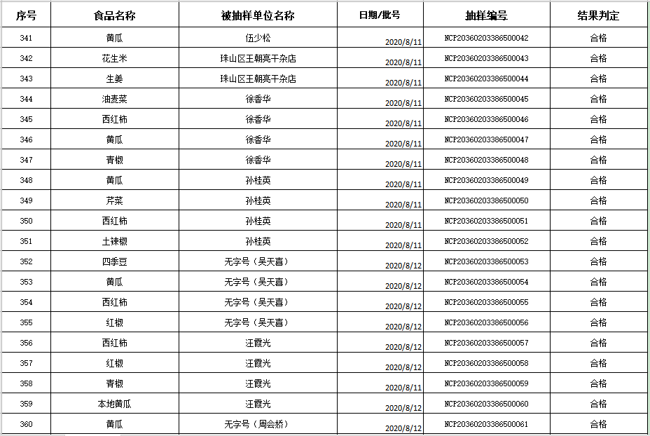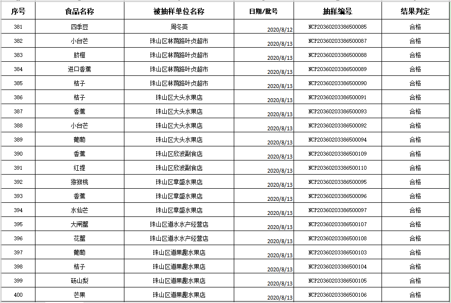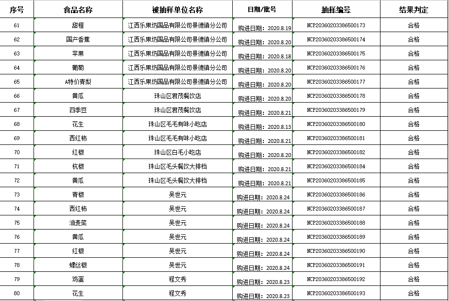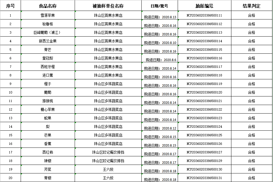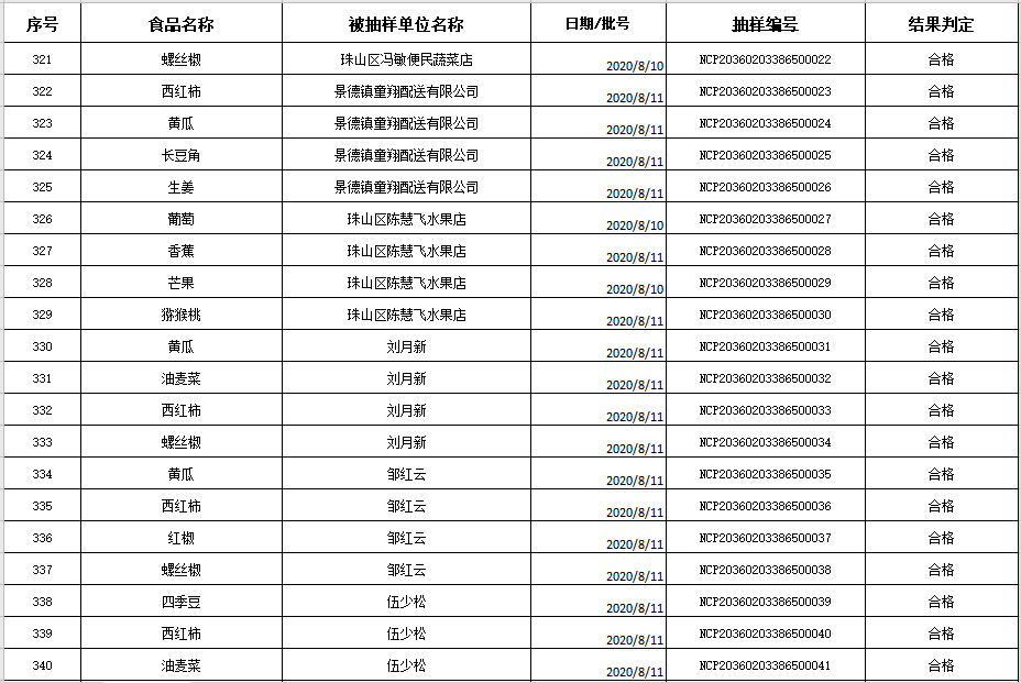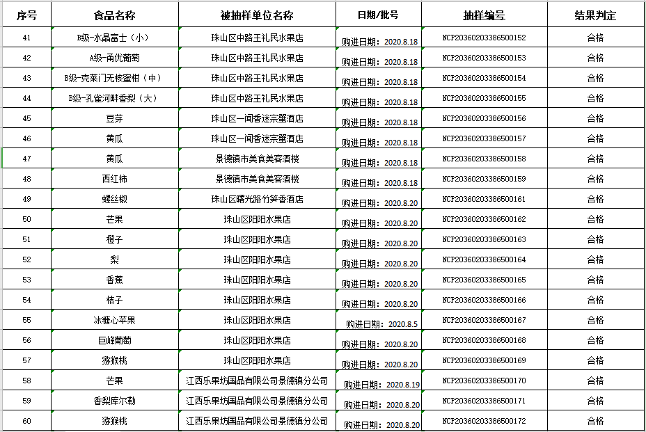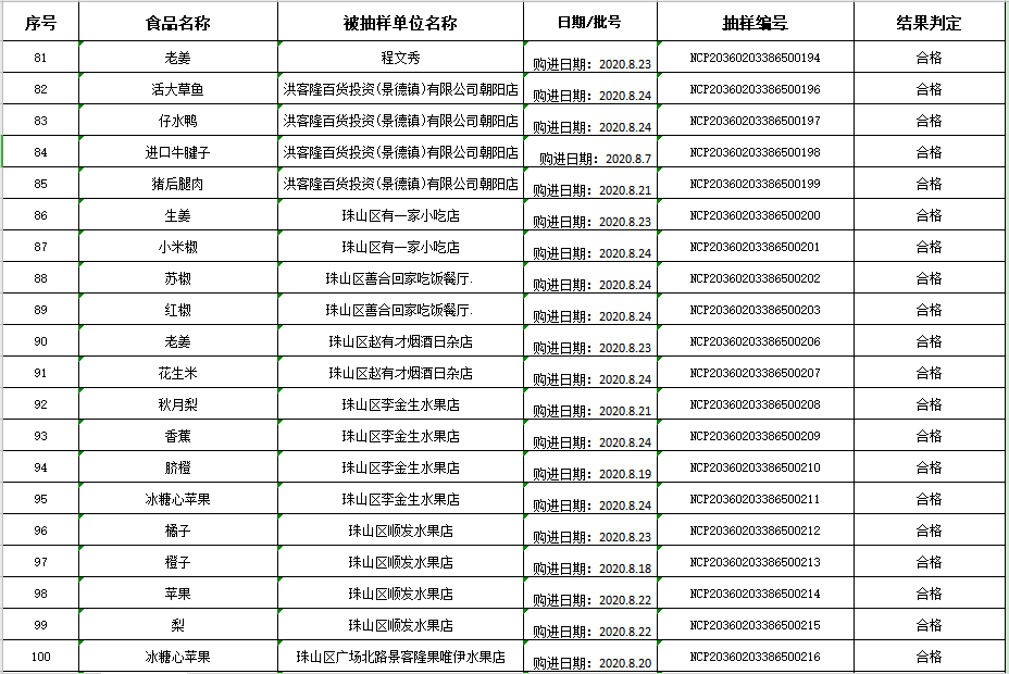 依据《中华人民共和国食品安全法》及其实施条例等有关规定,珠山区市场监督管理局本期公布2020年珠山区食品抽检信息共600批次样品,现将抽检信息公布如下: