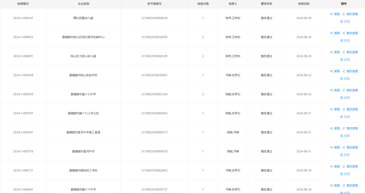 年以来,我区运用“赣溯源”平台对辖区内校园食品安全开展专项检查,现将检查结果公布如下:
