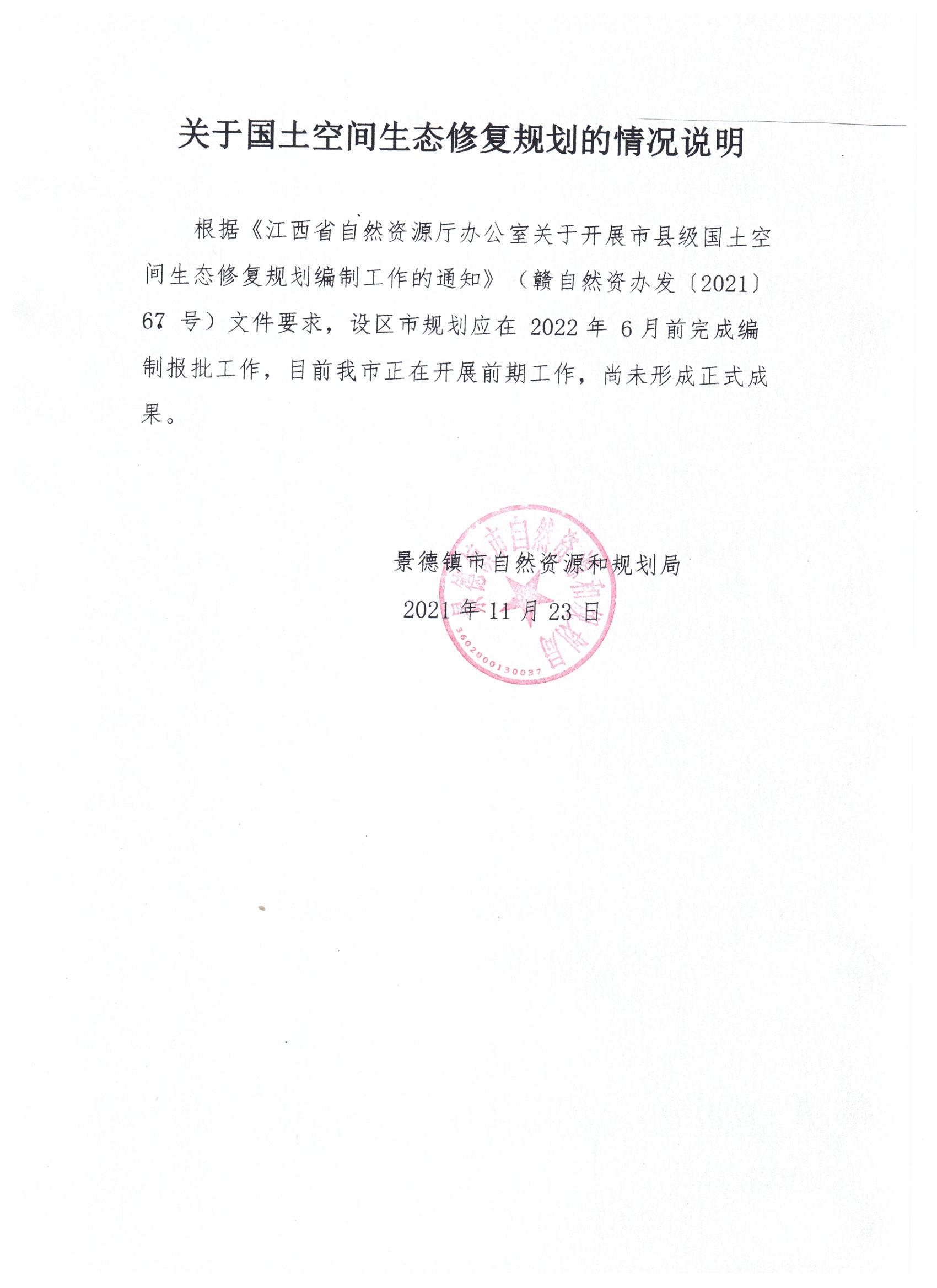 关于国土空间生态修复规划的情况说明