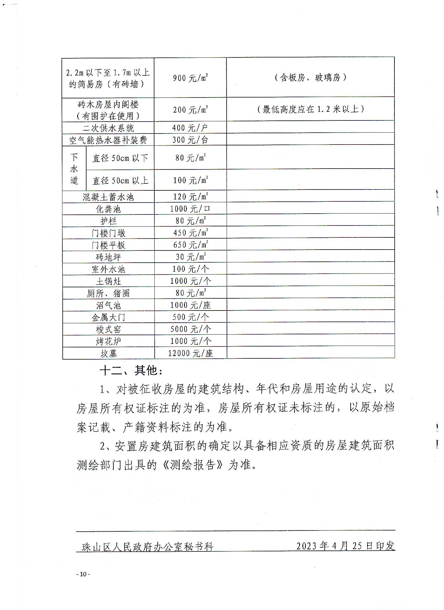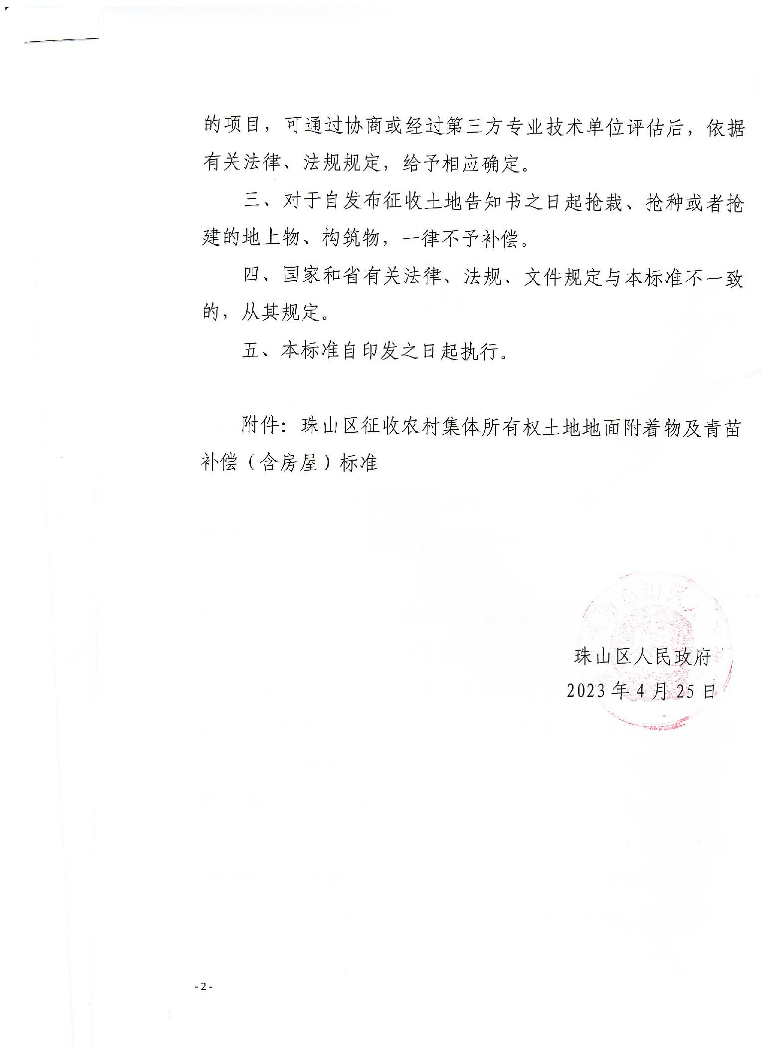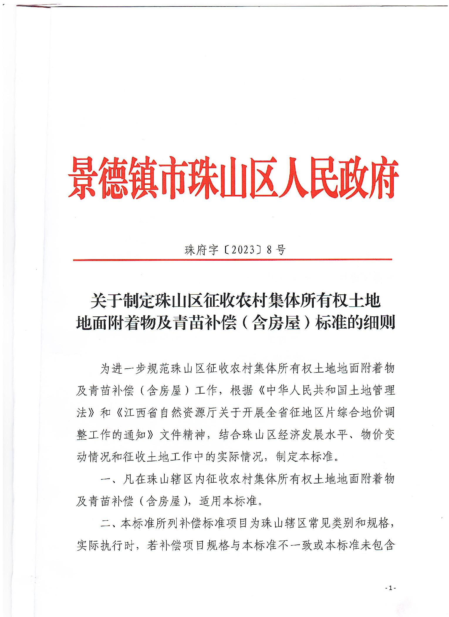 关于制定珠山区征收农村集体所有权土地地面附着物及青苗补偿(含房屋)标准的细则
