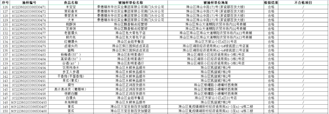 【守底线、查隐患、保安全】景德镇市珠山区市场监督管理局2022年第二期食品安全监督抽检信息公示