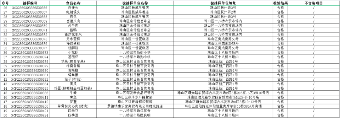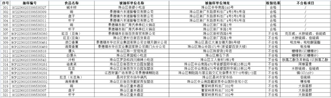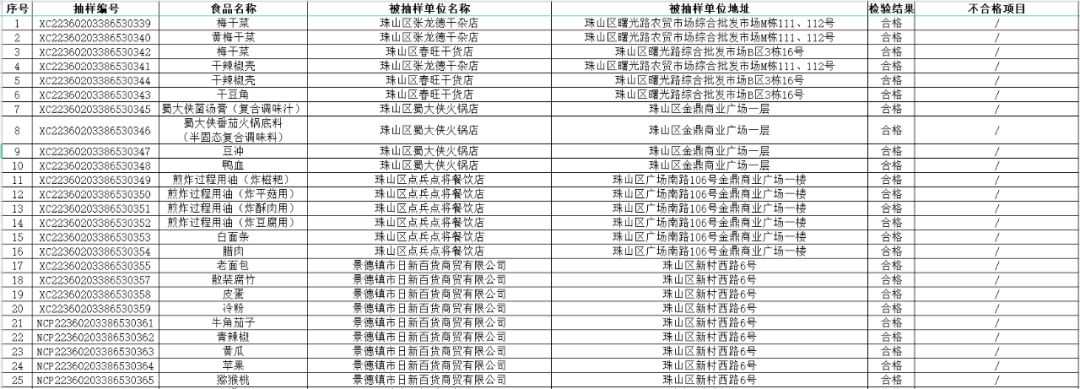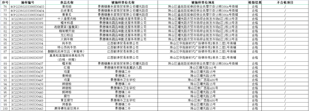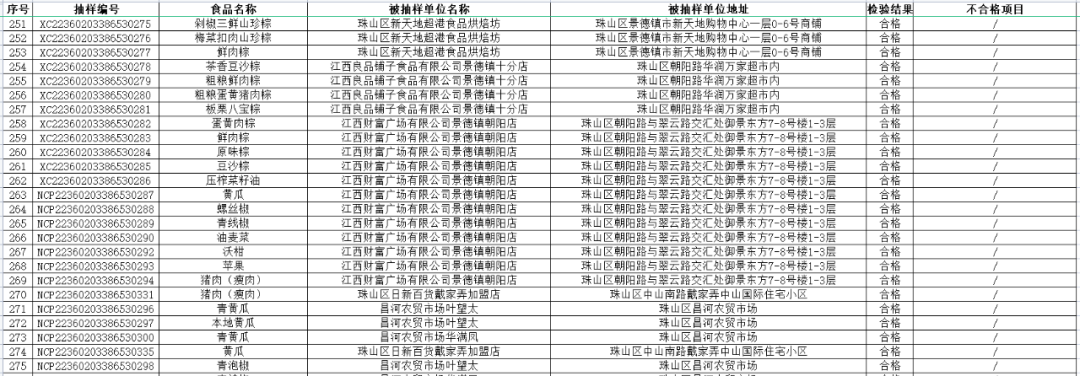 【守底线、查隐患、保安全】景德镇市珠山区市场监督管理局2022年第二期食品安全监督抽检信息公示