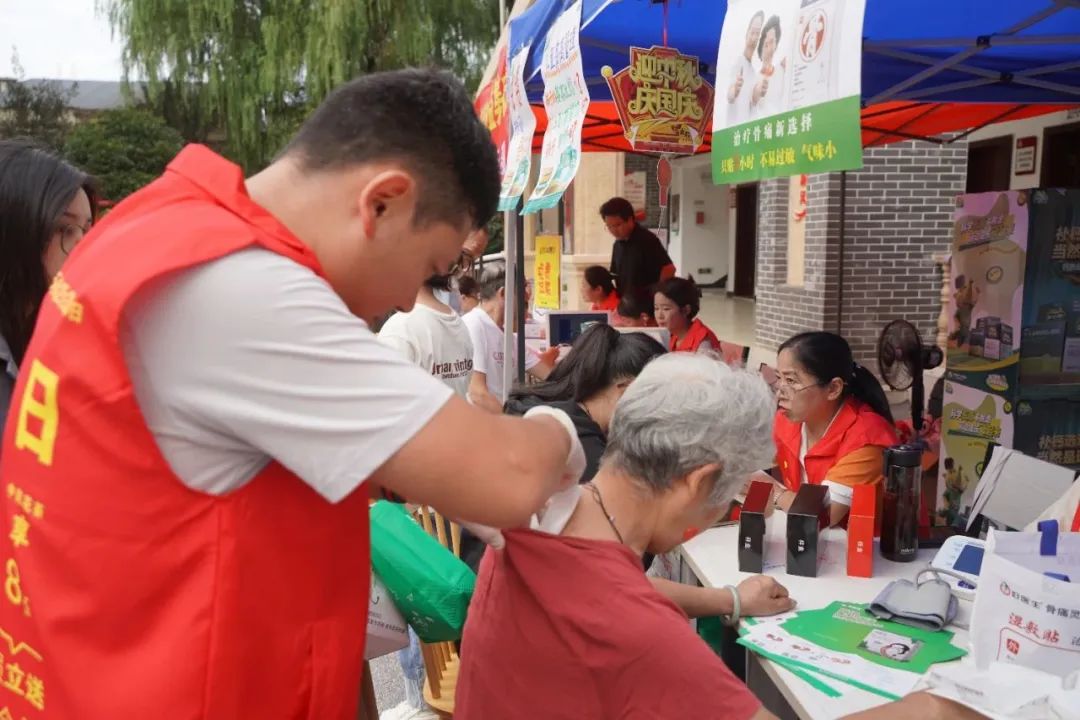 在健康公益体检和爱心义剪区域,老年人互动最为积极,医疗卫生服务志愿者义务为大家测量血压、血糖,免费体验三伏贴等项目,并为老人发放健康宣传品,讲授健康理念。参与义剪的年轻发型师,认真为老人梳理装扮,助老人倍添精神,吸引了许多老年居民排队参与,大家纷纷为此点赞。