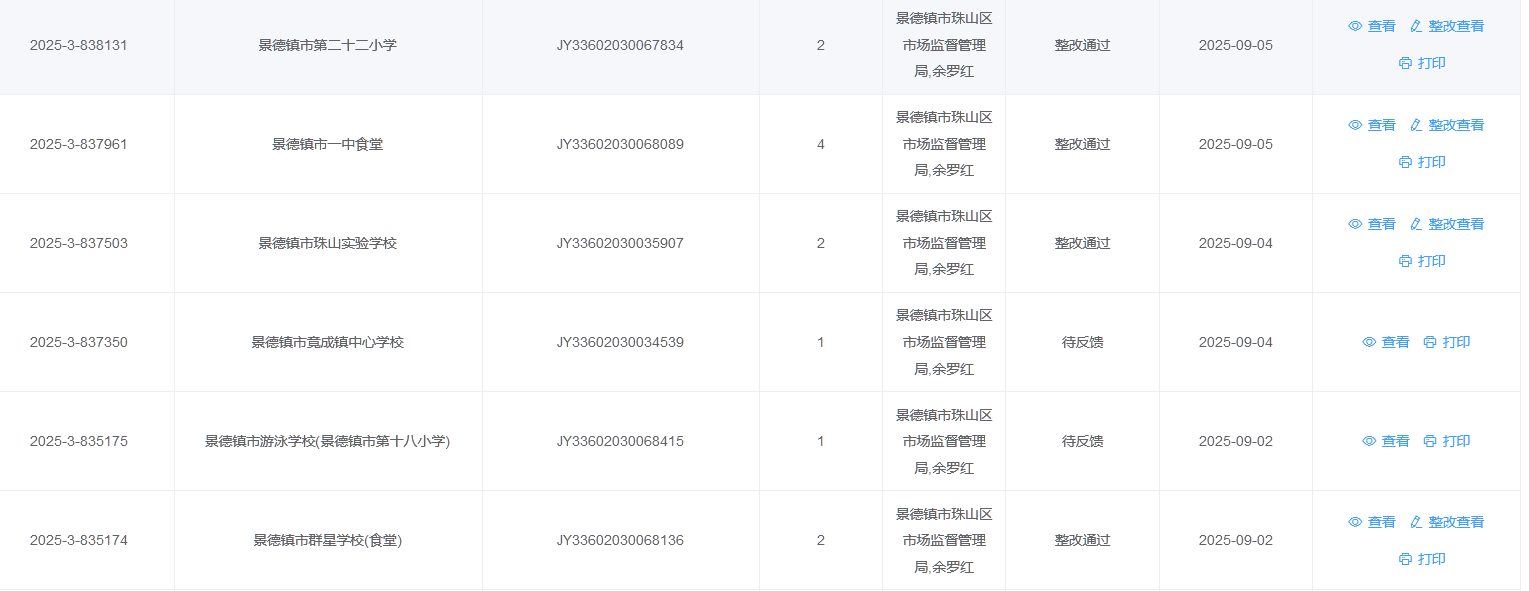 根据校园食品安全排查整治深化行动的工作要求,2025年秋季开学以来,我区运用“赣溯源”平台对辖区内校园食品安全开展专项检查,现将检查结果公布如下: