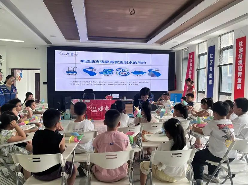 为积极响应国家关于加强未成年人暑期安全防护的号召,景德镇市民政局、景德镇市慈善总会、珠山区民政局、珠山区慈善会及先锋社会工作服务中心联合开展的“温暖童行——护航未来之防溺水安全教育课堂”主题活动于7月22日下午和7月24日下午分别在珠山区社会组织培育发展创新基地和昌河街道梦园社区党群服务中心火热开启。活动旨在通过创新形式将防溺水知识转化为可感可触的生存技能,为孩子们构筑坚实的暑期安全屏障,吸引了40余名儿童积极参与。
