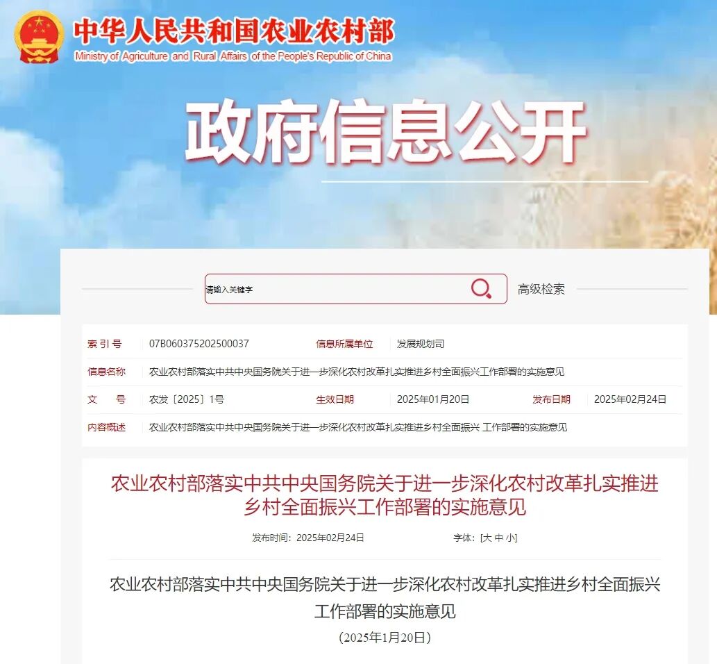 为深入贯彻落实《中共中央 国务院关于进一步深化农村改革扎实推进乡村全面振兴的意见》精神,扎实做好2025年“三农”工作,现提出以下意见。