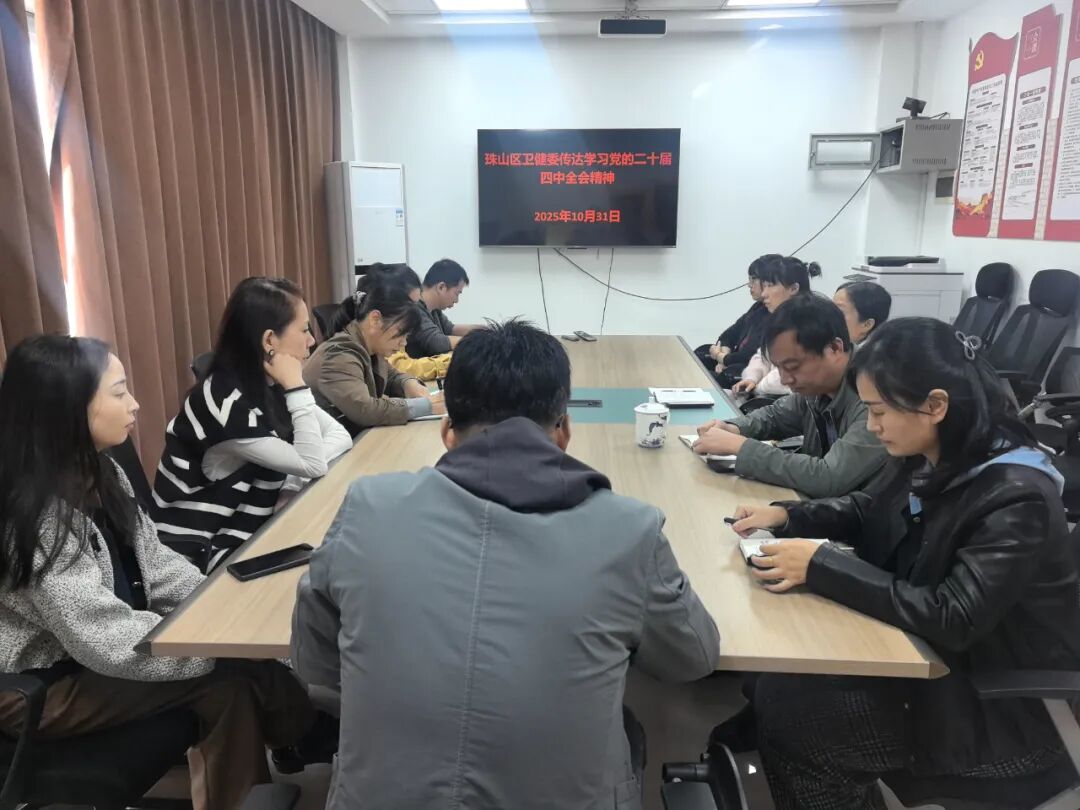 10月31日,珠山区卫生健康委员会召开专题会议,传达学习贯彻党的二十届四中全会精神。会议还传达学习了国家卫生健康委党组书记、主任雷海潮对《中共中央关于制定国民经济和社会发展第十五个五年规划的建议》中关于卫生健康工作重要部署的介绍与解读。