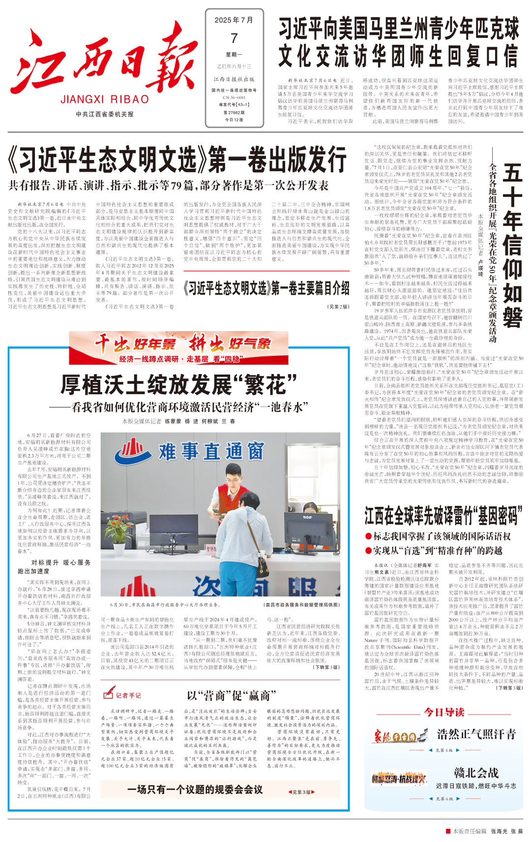 为何如此?近期,记者循着企业全生命周期,走园区、访企业、进工厂、入行政服务中心,探寻江西各地如何以经营主体需求为导向,以更加务实的作风、更加有力的举措优化营商环境,激活民营经济“一池春水”。